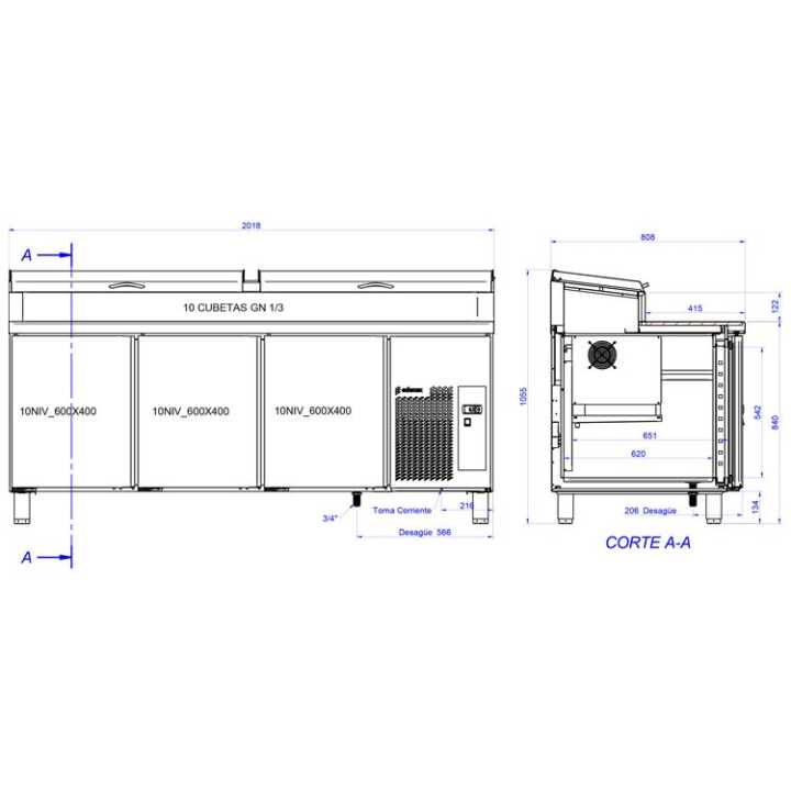 Tipo cubeta GN: 1/3 GN