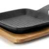 Inclui uma base de madeira para servir e apresentar a comida recém-cozida.