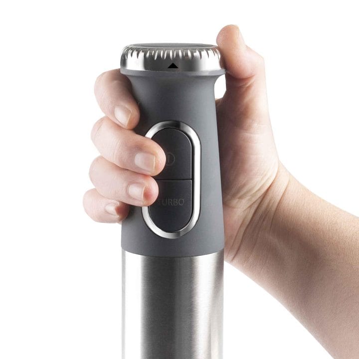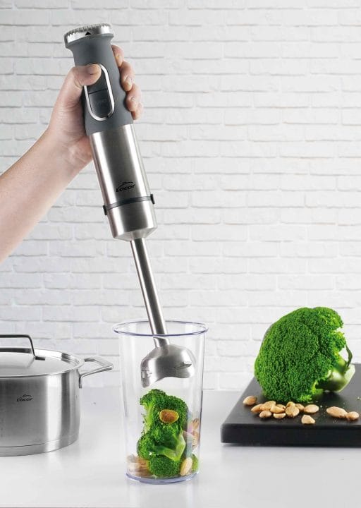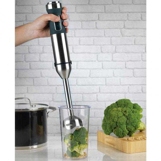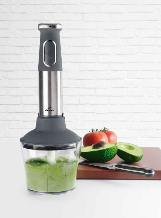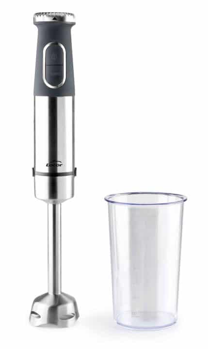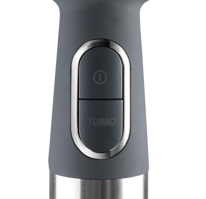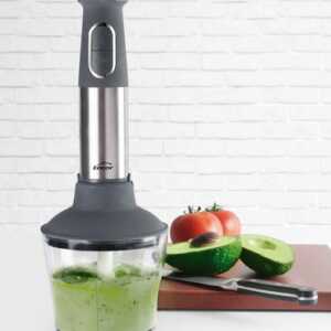 Liquidificador gama MIX com pé e lâminas de aço inoxidável de alta qualidade com regulador de velocidade e função turbo. Inclui copo misturador.
