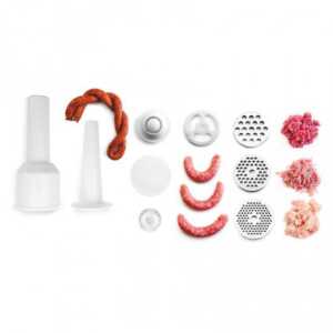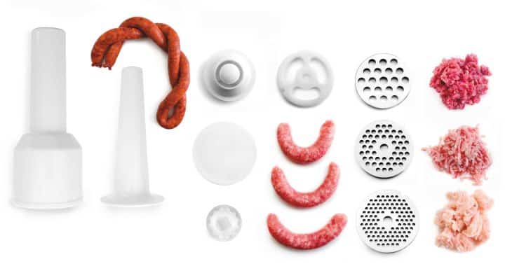 Inclui acessórios para preparação de enchidos e um empurrador para a carne