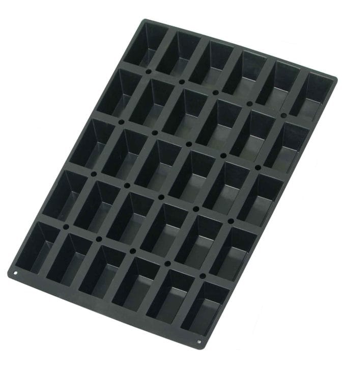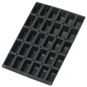 Molde os mini cakes para bolos com 30 cavidades de 99×49 mm, 30 mm de altura e 110 ml cada uma fabricado em silicone da série Black.