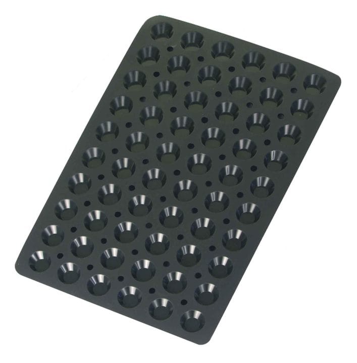 Molde para uma pastelaria com 60 bolsões de Ø44×10 mm e 10 ml cada uma fabricado em silicone da série Black.