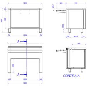 Dimensões (mm): 1300 x 646 x 850