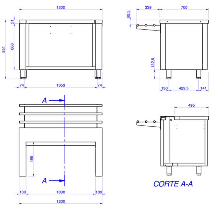 Móvel em forma de U: Para alojar um carro quente dispensador de pratos CPC2-28.