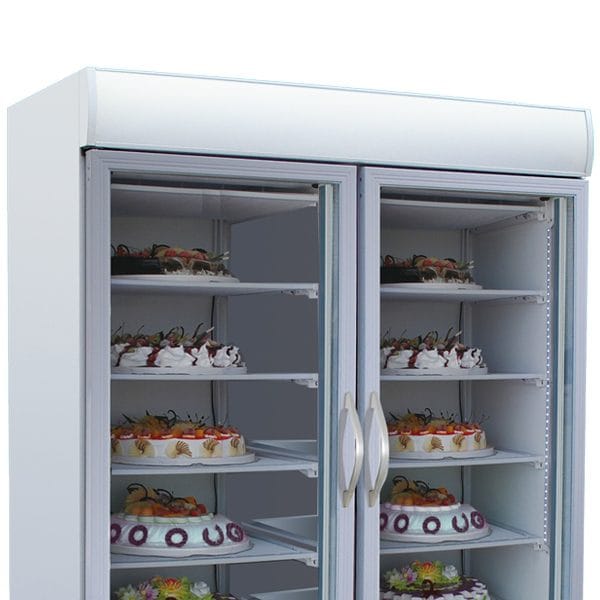 Além disso, dispõe de iluminação interior LED sob a forma de duas faixas verticais, tanto no interior como atrás da cobertura, o que garante uma exposição óptima dos seus produtos, tornando-os mais atraentes e tentadores