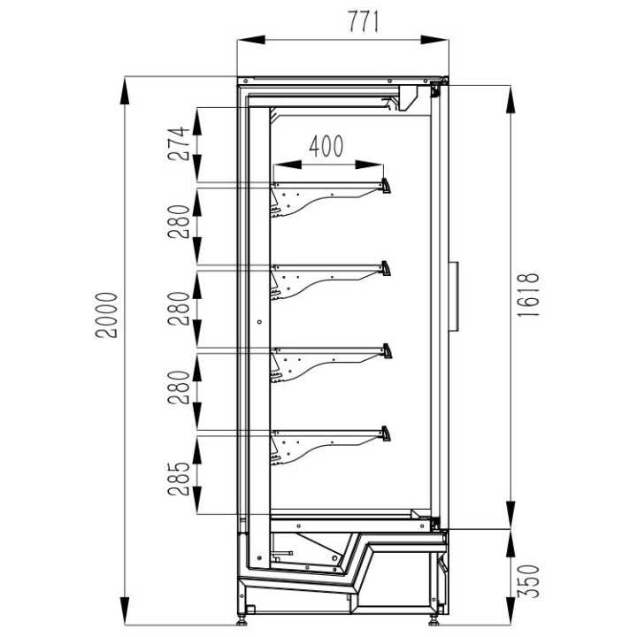 4 linhas de prateleiras sólidas reforçadas de 500 mm de largura, feitas de chapa pintada de preto (prateleiras extra disponíveis)