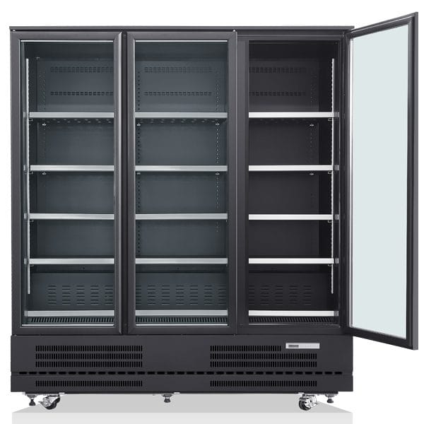 Portas articuladas de vidro triplo em congelação e vidro duplo em refrigeração
