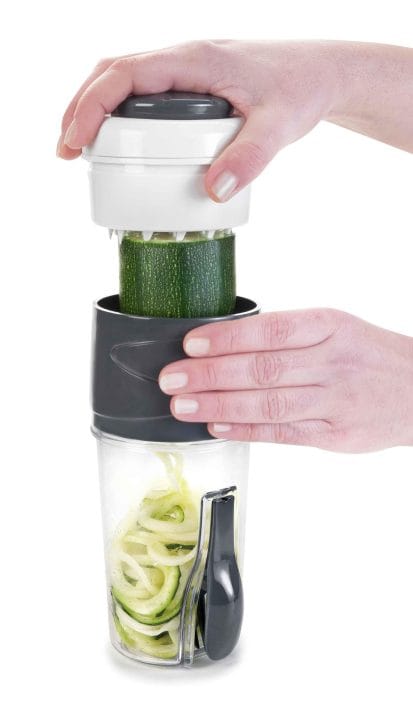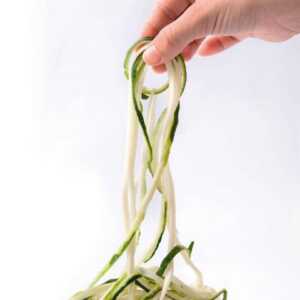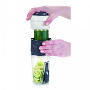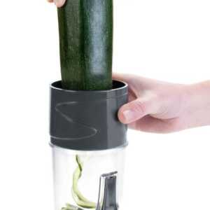 Curta frutas e legumes em forma de macarrão, sendo ideal para o corte de abobrinha, batata, beterraba, cenoura, nabo, etc.