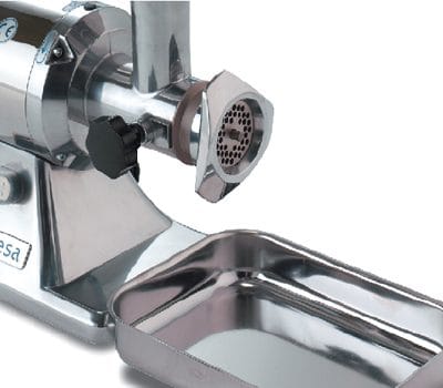 Uma ampla gama de picadores de carne destinados ao uso profissional.