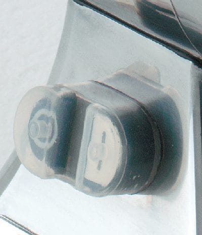 Todos os modelos têm bandejas de alimentação e montagem feitas de aço inoxidável e um empurrador de alimentos que facilita a colocação do produto na abertura de entrada.