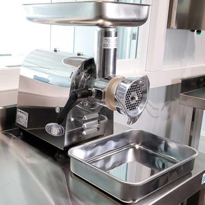 Uma ampla gama de picadores de carne destinados ao uso profissional.