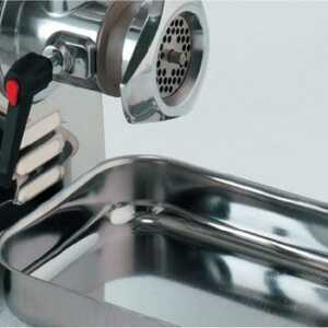 Todos os modelos têm bandejas de alimentação e montagem feitas de aço inoxidável e um empurrador de alimentos que facilita a colocação do produto na abertura de entrada.