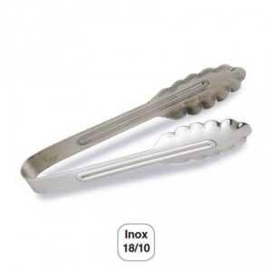 Pinça multiusos de 16 cm para uma cozinha ou de serviço de mesa fabricada em aço inoxidável de grande qualidade e resistência à corrosão.