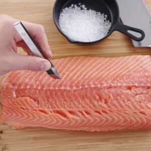 As pinças para ossos de peixe com cabeça inclinada são um acessório de cozinha útil feito de aço inoxidável.