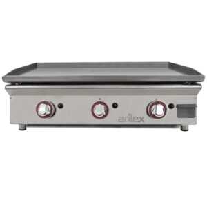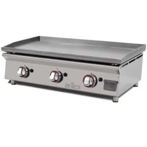 Queimador de design ARILEX com saída de chama em todo o seu perímetro garantindo uma distribuição uniforme do calor por toda a placa