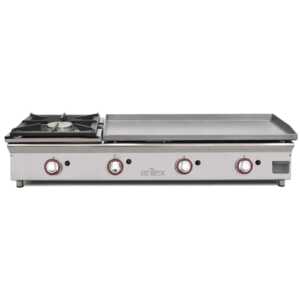 Queimador de design ARILEX com saída de chama em todo o seu perímetro garantindo uma distribuição uniforme do calor por toda a placa
