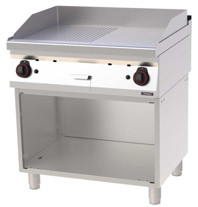 Placa de grelhar em ferro fundido estriada e lisa com base gás 80