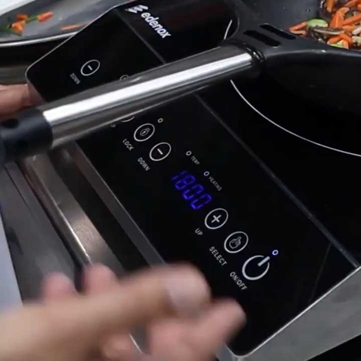 É muito confortável, com uma superfície de cozedura de até 35 cm, ideal para frigideiras profissionais, base reforçada em aço inoxidável, pés de suporte que proporcionam segurança e estabilidade durante a cozedura, além de todas as comodidades de uma cozedura por indução, como a sua facilidade de limpeza e segurança.
