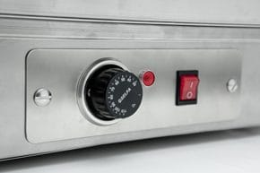 Temperatura de trabalho de 30 °C a 120 °C, regulável através de termóstato.