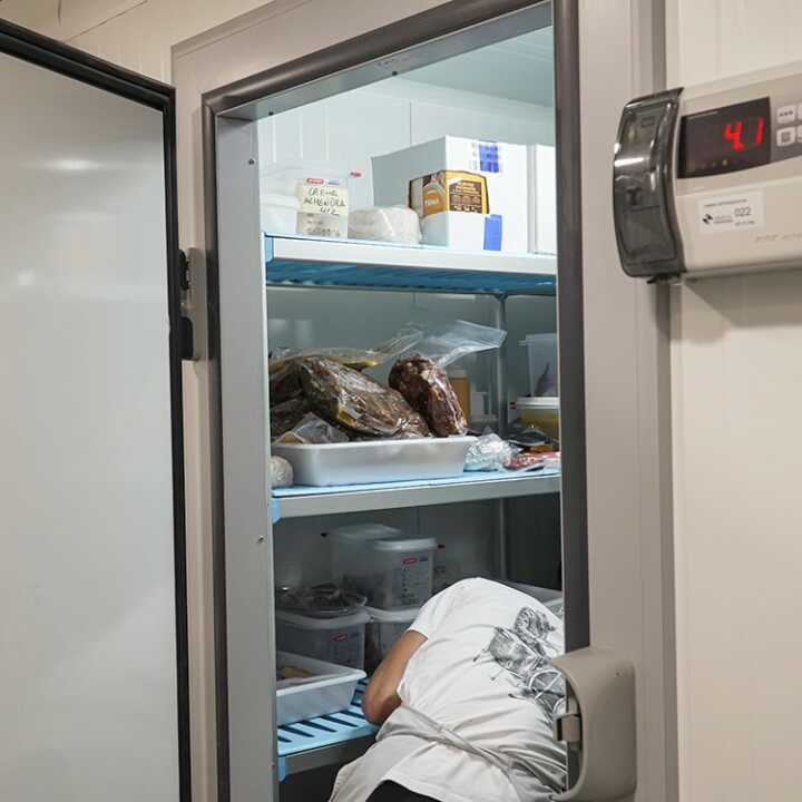Estantes com estrutura de alumínio anodizado e prateleiras com grelhas de polietileno de qualidade alimentar.