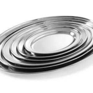 O prato de servir oval para carne e fritos, com rebordo suave, é um acessório elegante que garante uma excelente apresentação dos pratos. É ideal para servir carne e fritos em restaurantes e buffets