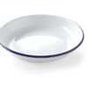 Aço esmaltado em branco com um elegante rebordo em azul.