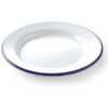 Aço esmaltado em branco com um elegante rebordo em azul.