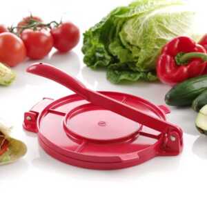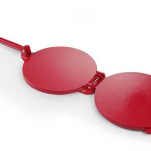 Em liga de alumínio com revestimento lacado a vermelho no exterior.