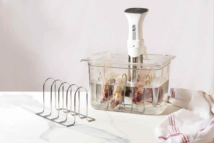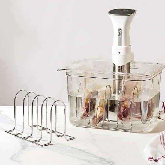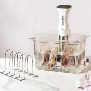 Rack para cocedor Sous Vide fabricado em aço inoxidável de 4 mm de haste ideal para segurar os sacos de vácuo, evitando que flutuem.