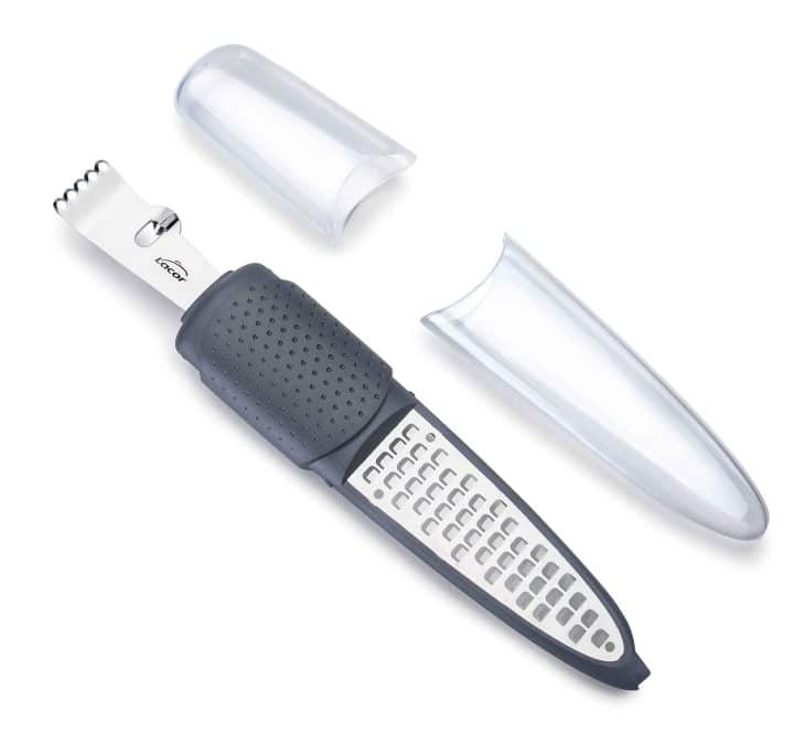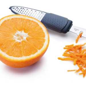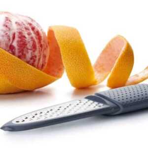 Ralador de 18 cm de comprimento para cozinha, concebido também como uma ferramenta para corte decorativo de legumes, frutas e produtos hortícolas.