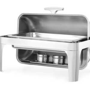 O conjunto inclui dois suportes para latas de combustível e um recipiente GN 1/1 com 65 mm de profundidade.