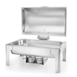 Fornecido com recipiente para água removível, recipiente para alimentos GN 1/1 com 65 mm de profundidade 2 suportes para latas de combustível para réchauds.