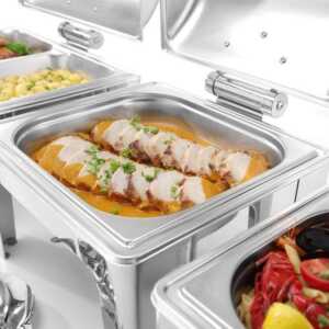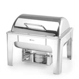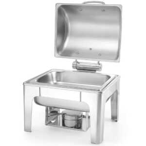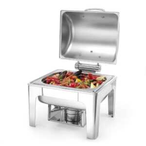 Fornecido com recipiente para água removível, recipiente para alimentos GN 1/2 com 65 mm de profundidade e suporte para lata de combustível para réchauds.