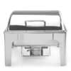 Fornecido com recipiente para água removível, recipiente para alimentos GN 1/2 com 65 mm de profundidade e suporte para lata de combustível para réchauds.