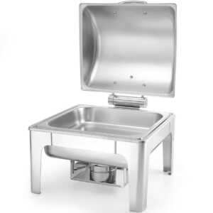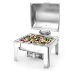 Fornecido com recipiente para água amovível, recipiente para alimentos GN 2/3 com 65 mm de profundidade e suporte para lata de combustível para réchauds.