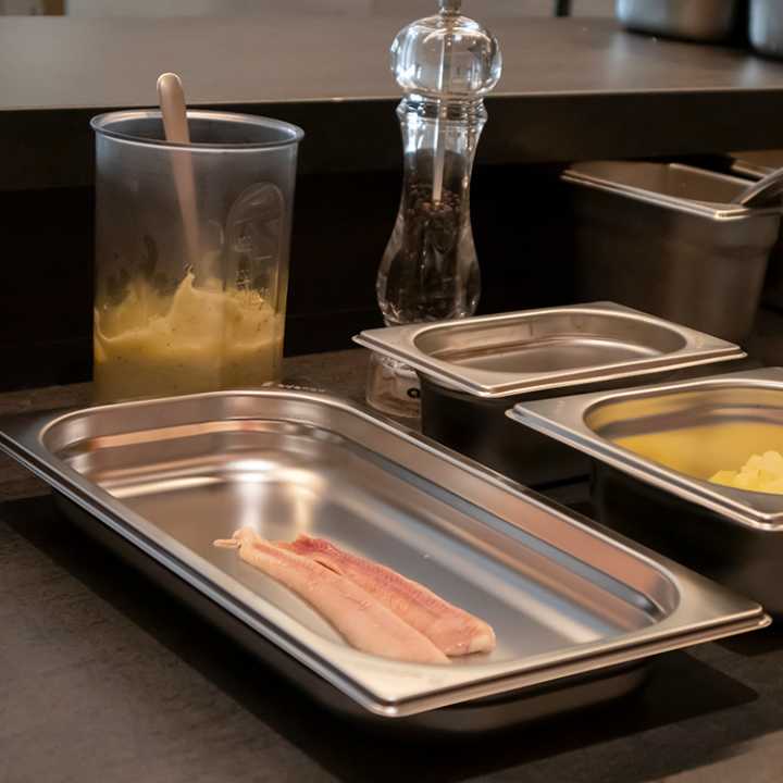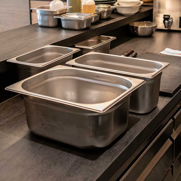 Existe uma tampa para cada necessidade (cubas lisas, com alças, para conchas e herméticas). O design da junta labial vulcanizada de silicone da tampa hermética garante um fechamento seguro e higiênico, com uma faixa de temperatura de -40 °C a +180 °C.