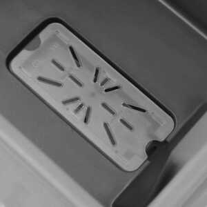 A tampa hermética deslizante, permite retirar gelo facilmente.