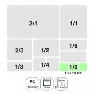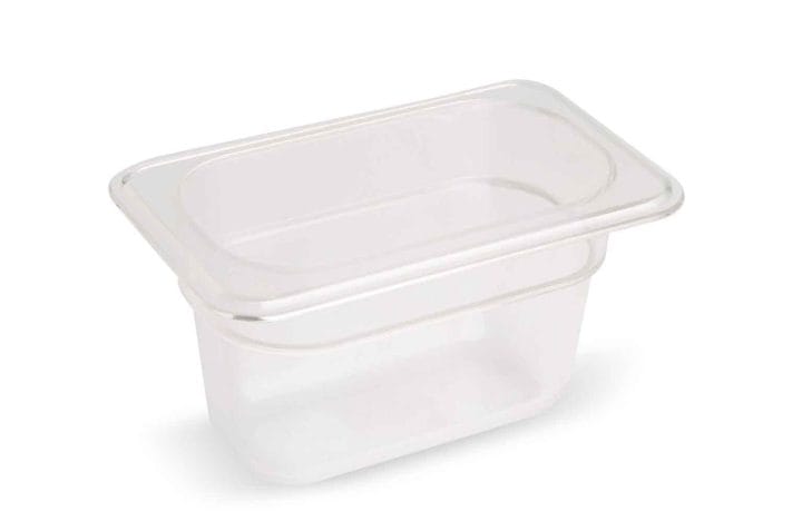 Balde tamanho GN 1/9 176×108 mm para cozinhas profissionais fabricada em policarbonato de alta qualidade leve e indeformável.