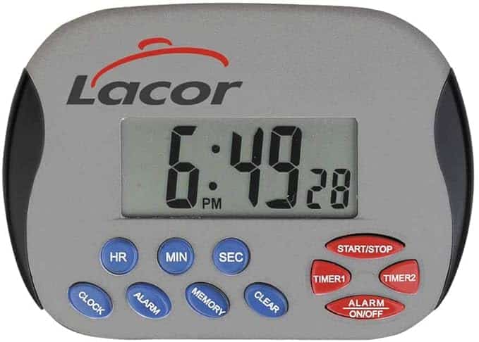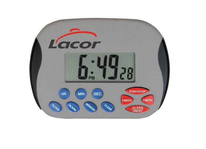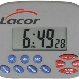 Relógio digital de cozinha com base magnética e avisador acústico para programar os tempos de cozido de alimentos. Medidas: 10,5×7 cm