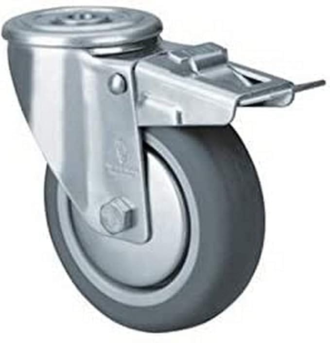 Roda, com freio para estante modular com um robusto âncora a pressão em aço inoxidável.