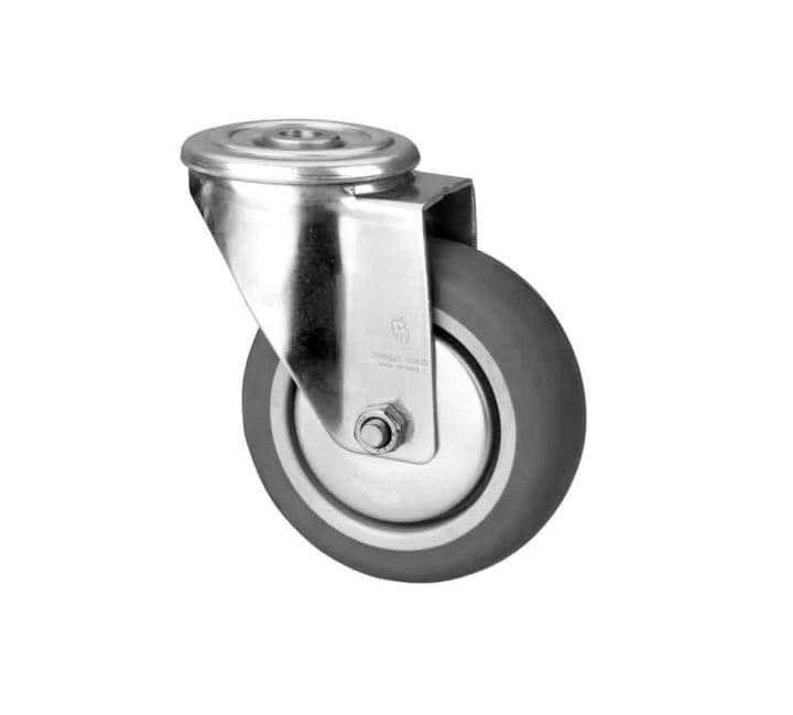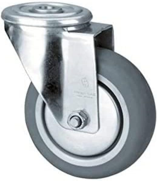 Roda sem freio para estante modular com um robusto âncora a pressão em aço inoxidável.