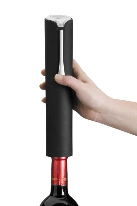 Saca-rolhas elétrico de 1,2 V com cabo ergonómico e carregador de rede. Funcionamento silencioso e sem vibrações. Qualidade profissional para uso doméstico. Medidas: 12×32 cm