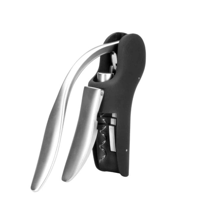 Saca-rolhas de mesa fabricado em zamak preto e cromado de alta qualidade. Abre as garrafas de vinho, de forma fácil e sem esforço.