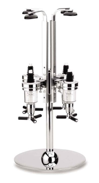 Servidor de bebidas e cocktails tipo revólver, com 4 garrafas de 4 cl de cada uma. Fabricado em aço inoxidável de alta qualidade é ideal para bares de copas e coctelerías.