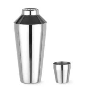O Shaker Cobbler 3 partes é uma ferramenta de bar “tudo em um”. O seu design compacto, mas prático, inclui um filtro incorporado que o torna perfeito para barmen principiantes.