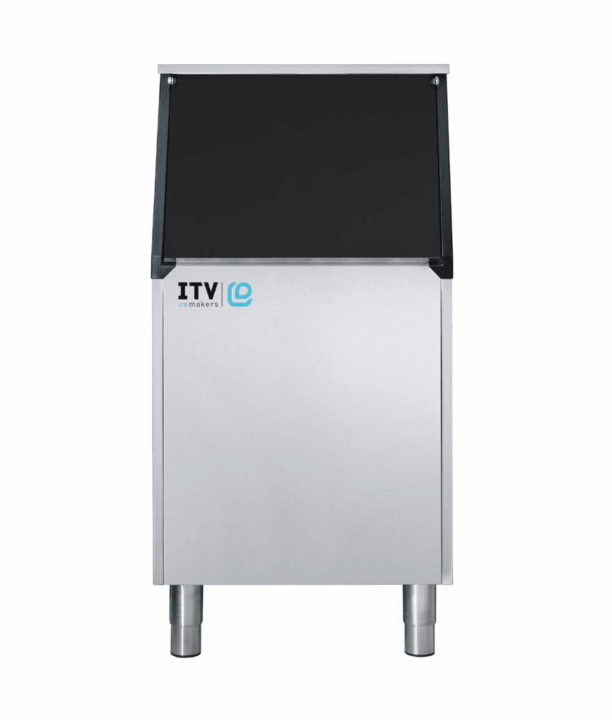 Depósitos para armazenamento de gelo (SILO) com estrutura exterior em aço inoxidável, isolamento interno em poliuretano de alta densidade que proporciona um correto isolamento e durabilidade do gelo.