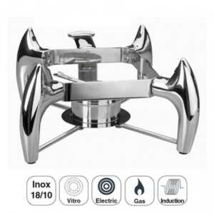 Suporte Chafing Dish GN 1/2 gama Luxe fabricado em aço inoxidável 18/10 de alta qualidade e excelente resistência à corrosão. Ideal para hotelaria e buffets.