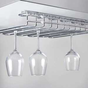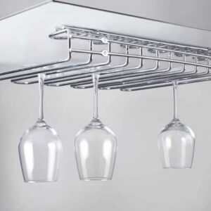 Suporte de tapas de aço cromado que permite economizar espaço e armazenar os cálices de maneira ordenada.