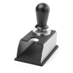 Com encaixe para colocar um porta-filtros para calcar o café.