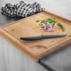 A tábua de corte Dupla é reversível, graças aos seus dois amortecedores que farão com que possamos colocá-la sobre a bancada por qualquer um de seus dois lados, evitando que se delice.